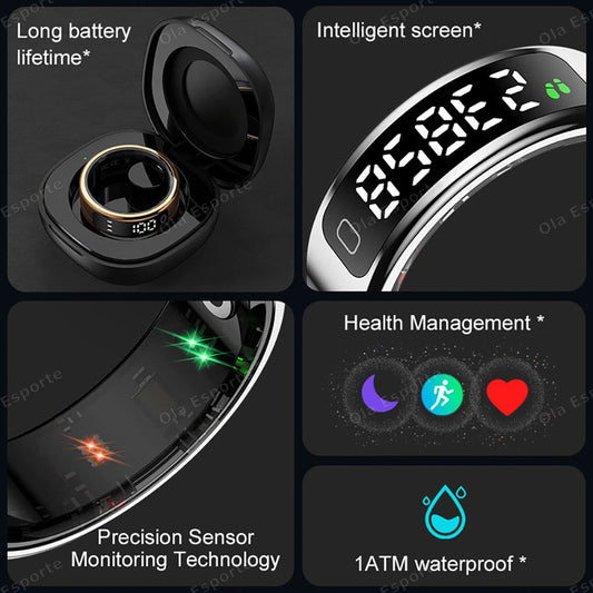For Xiaomi Men Women Smart Ring With Charging Case Heart Rate Sleep Sport Fitness Tracker 3ATM Take Photo SmartRing Android IOS