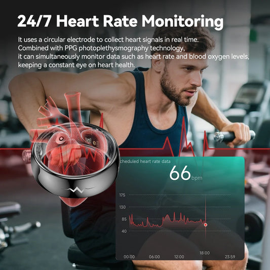 For Xiaomi Huawei New Smart Ring Heart Rate Blood Oxygen Health Monitor 3ATM Waterproof Multi-sport Mode Wireless Charging