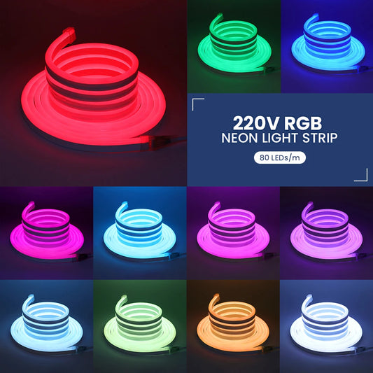 220V WIFI Tuya RGB Neon LED Strip Light Smart APP Remote 750W Controller Kit Waterproof 60 80LEDs/M EU US UK AU Plug Flex Lamp