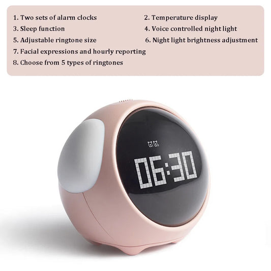 New Night Light Cute Expression Alarm Clock Child Alarm Clock Voice Controlled Light Multifunctional For Home Thermometer