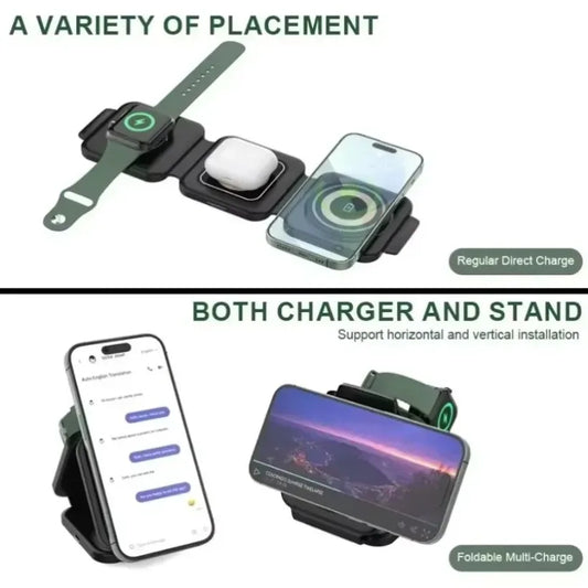 3-in-1 Charging Station Foldable Wireless Charger For Magsafe iPhone 16/15/14/13/12 Apple Watch 10/9/8 AirPods Pro Fast Chargers