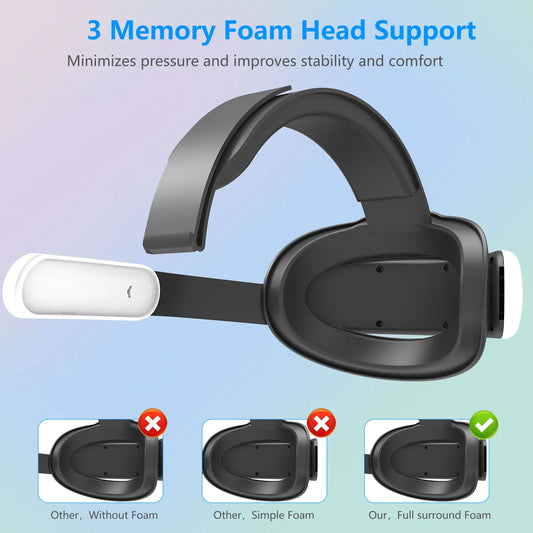 Headband with RGB Lighting 12000mah Rechargeable Battery Compatible with Meta Quest 3/3S Gaming Headband VR Accessories