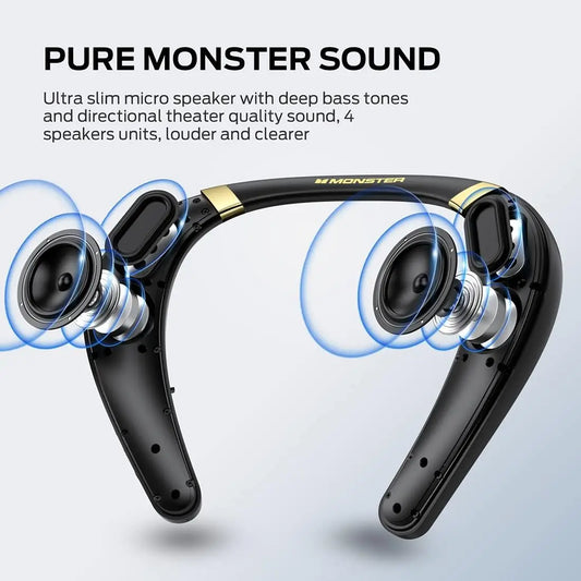 Monster Boomerang Neck Band Bluetooth Speaker 3D Stereo Sound Neckband Speaker IPX7 Waterproof Wireless Wearable Speaker