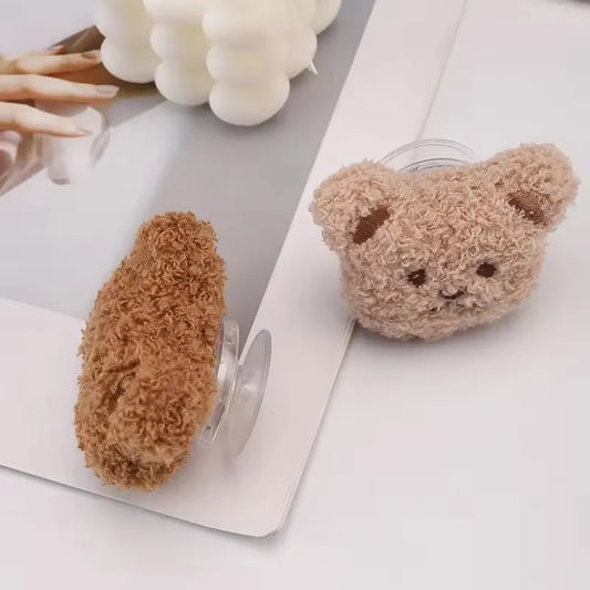 1PC Universal Cute Bear Phone Holder Funny Fluffy Plush Folding Gripfor iPhone Support Socket Pocket Finger Griptok Stand