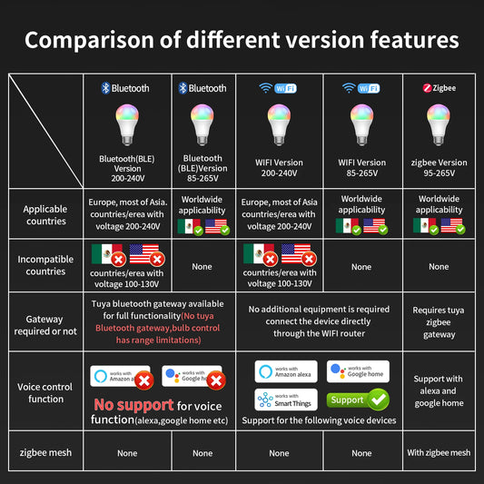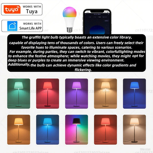 TNCE Tuya E27 Bulb Bluetooth/WIFI/Zigbee, Dimmable Light LED lamp 2700-6500k RGB, Smart Life APP, Voice with Alexa Google Home