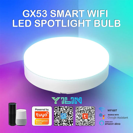 GX53 Smart LED Bulb RGBCW 12W Wardrobe Spotlight Bulb WIFI TUYA APP Control Intelligent LED Downlight Cabinet Light AC220V