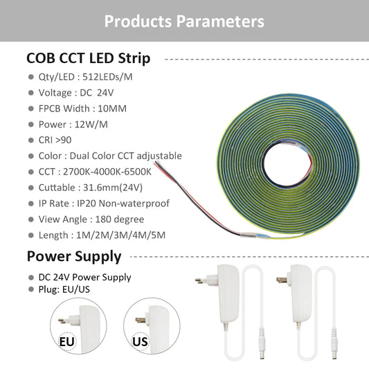 Tuya Smart Life CCT COB LED Strip Lights 24V FCOB LED Tape WIFI Dual White Dimmable Remote 5M Kit for Living Bedroom Room Decor