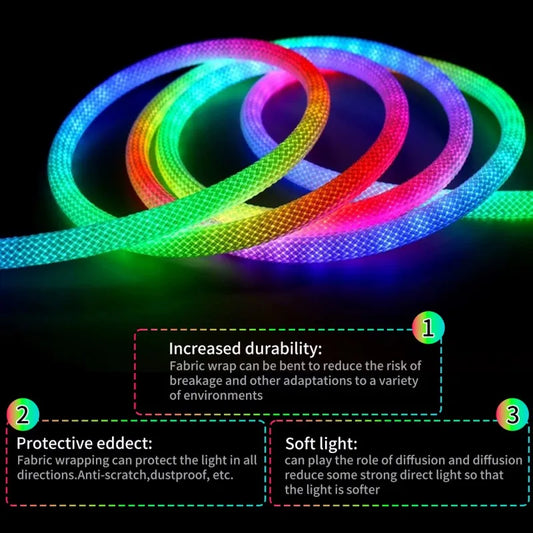 RGBIC Flexible Silicone LED Light Strip 5V Waterproof IP67 Round Reticulate Pattern 360 Degree Neon Glow Smart Rope Light