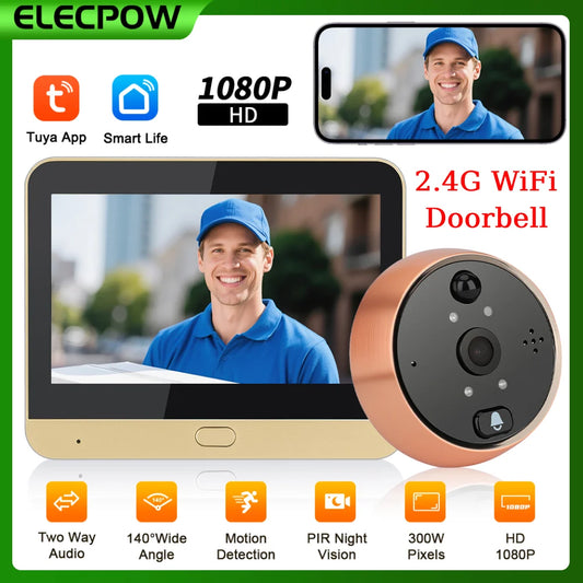 Elecpow Tuya Smart wifi Doorbell With Ring bell 4.3Inch 1080P Digital Door Peephole Camera PIR Night Vision Motion Detection