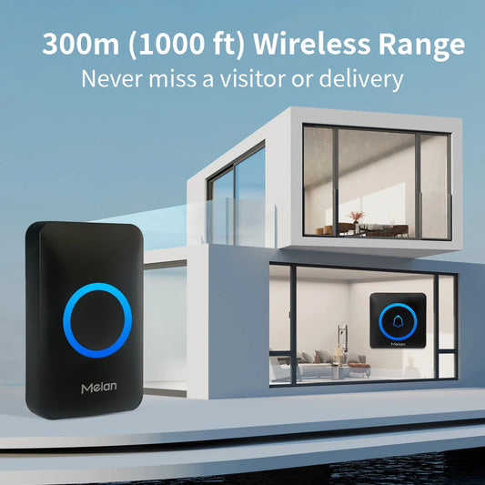 Meian Smart Home Doorbell Wireless Security Doorbell IP65 Waterproof Outdoor Door Bell 60 Songs 5 Volume Adjustable Chime Kit